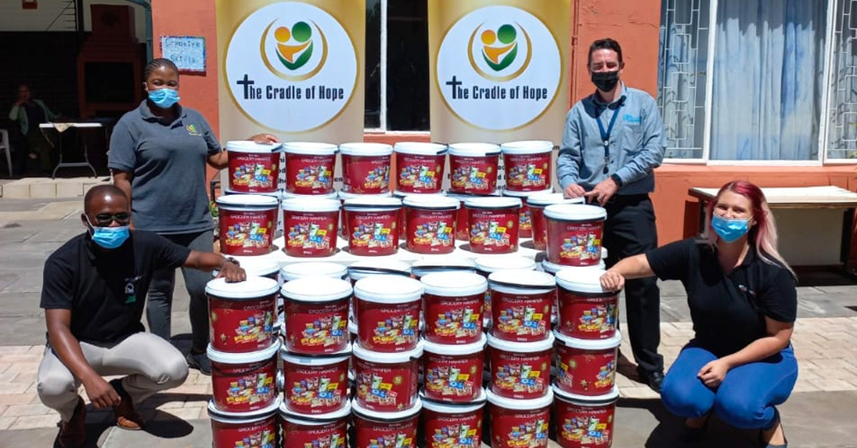 This festive season AIMS partnered with BrandIQ to donate 25 food buckets to the charity Cradle of Hope